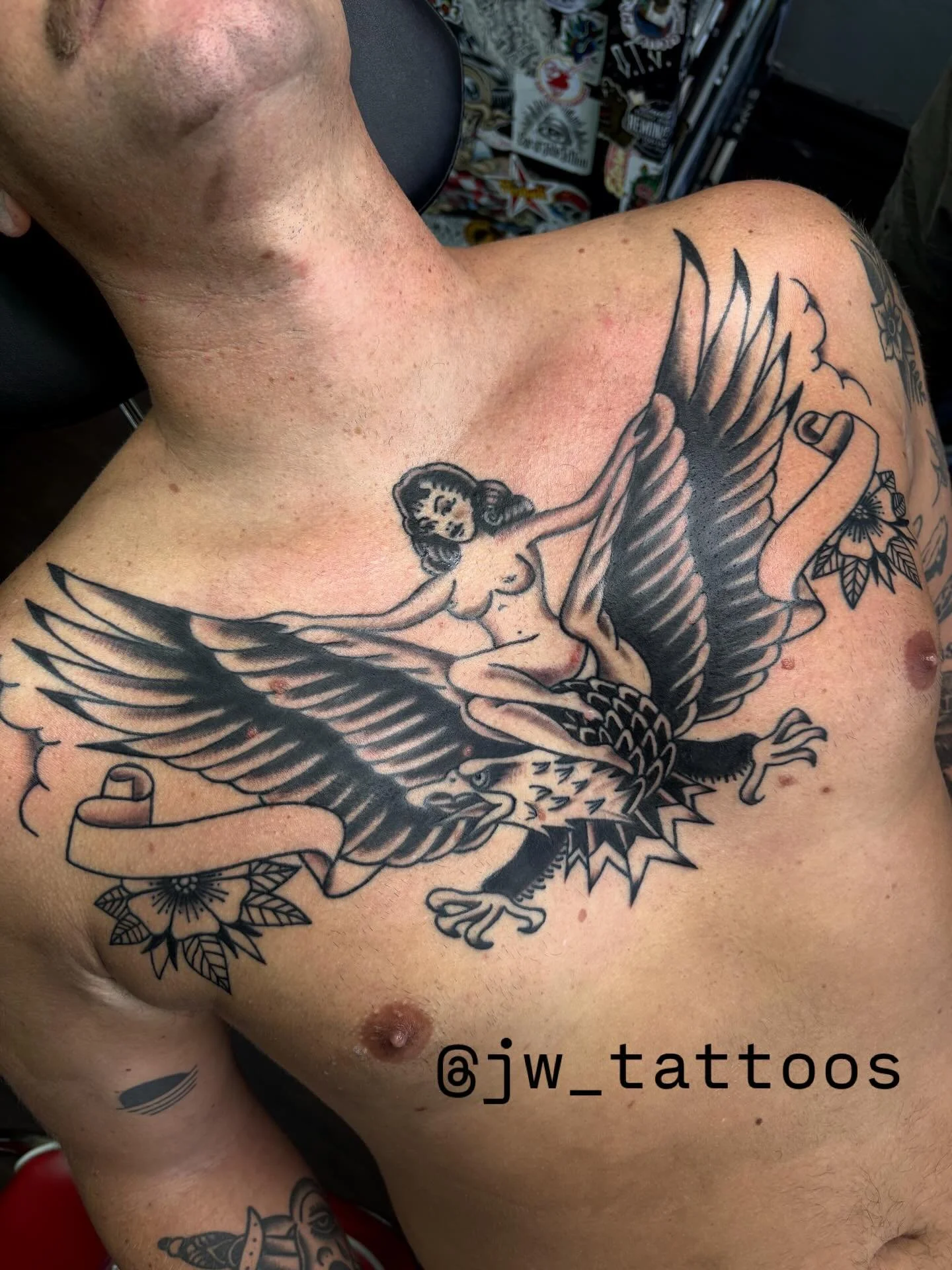 Jerry Walker is a Chicago native who moved to Los Angeles at the age of 18. He made a name for himself as an artist by painting backdrops for rock and roll bands such as Megadeth, and billboards for Hollywood Tower Records. He then transitioned to tattooing in 2002, and specializes in American Traditional. His work has been featured in magazines such as Inked, Tattooed Life, and Ink Junkies. He has also participated in tattoo conventions such as Ink and Iron and Golden State Tattoo Expo, and does frequent guest spots at Isso Tattoo in Norway.